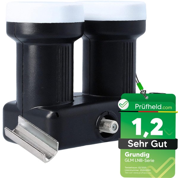 - Very well tested, note 1.2: The GSS Grundig GLMS 401 monoblock single LNB for Astra & Hotbird including twist-up aid was developed for direct connection and allows reception of 1 subscriber and 2 satellites. In the test of Prüfheld, the LNB convinced with its performance and received the rating "Very Good, Grade 1.2". TEST: Prüfheld.com, test period 02/2025, license number 252002051. Result: grade 1.2, very good. Trust in the quality of the GSS Grundig monoblock single LNB