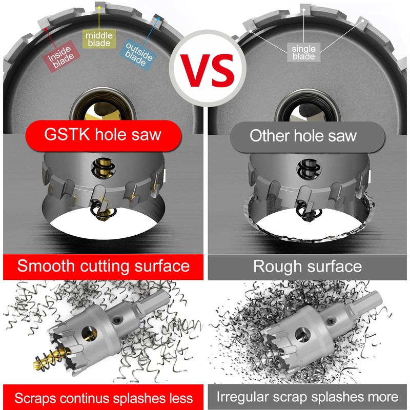 - 【Unique Selling Point】Tipped tooth blade,faster cutting experience. Double round circles to remove metal filings easily and efficient cooling. Eligible for rechargeable drill,portable hand drill,bench drill,electric drill and etc.