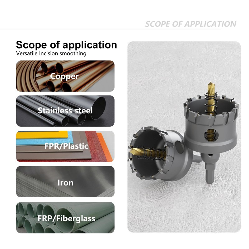 - 【Multiple material applications】:Ideal for stainless steel, metal, iron, and plastic, aluminum, FRP, etc. so on. (test for your reference: it apposite to cut a hole on 3mm stainless steel,15mm iron plate,15mm aluminum alloy.)