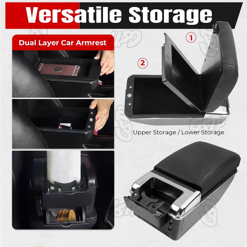 - Versatile Storage: The double-layer car armrest has an upper space for flat items like phones and a lower space for larger items, as well as a cup holder and mini drawer for rear passengers.