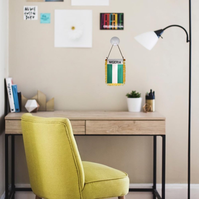GSYLPFT 4 X 6 Nigeria Flag Small Mini Nigerian Flags Banners for Car Rearview Mirror Window Hanging Decor with Suction Cup & Fringy