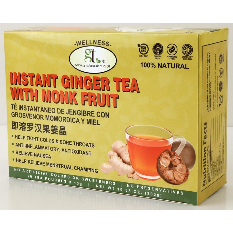 GT Instant Ginger Tea With Monk Fruit, 10.58 Ounce Box (20 Tea Pouches)