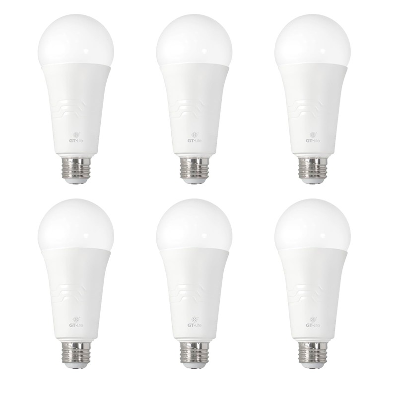 GT-Lite 6-Pack, 250W Equivalent LED 3-Way Light Bulbs, 2700K Soft White, A21, E26 Medium Base, 3 Brightness Levels, Adjustable with 3-Way Switch (Soft White 2700K, 50-200-250W Equivalent)