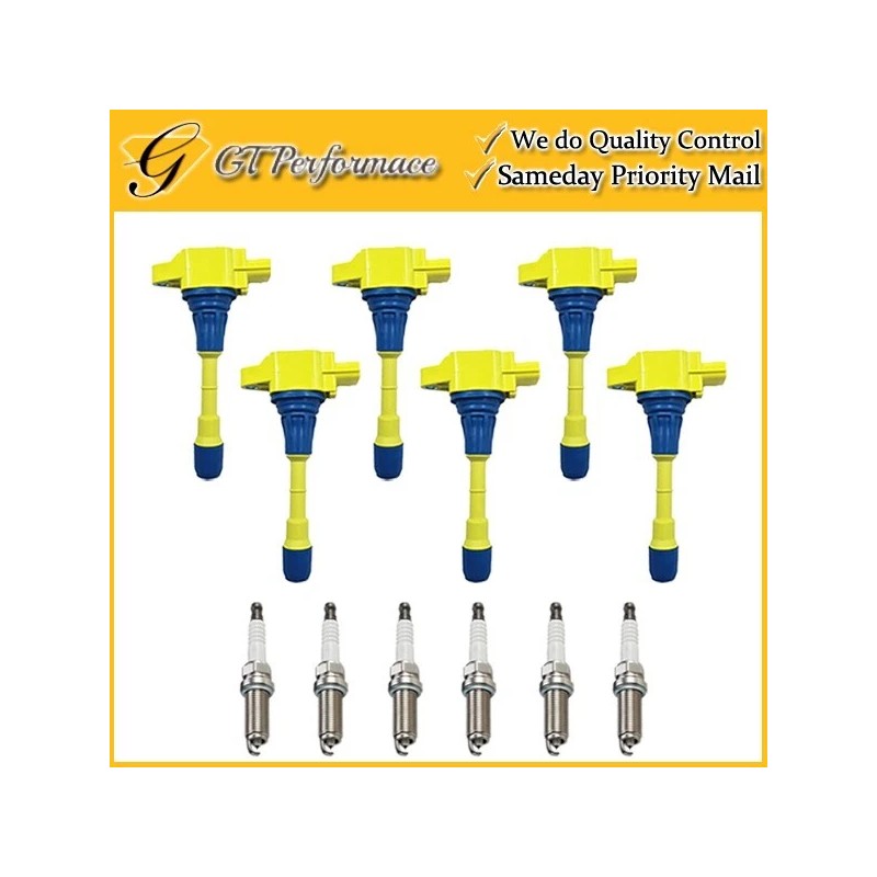 GT Performance Quality Ignition Coil & Spark Plug 6PCS Set for EX35/ Altima Maxima Murano V6