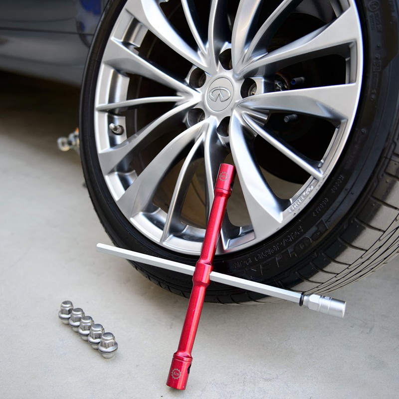 - DOUBLE DUTY Ultra-strong steel construction and an anti-slip grip allow this universal lug nut remover to also be used as a high torque breaker bar.