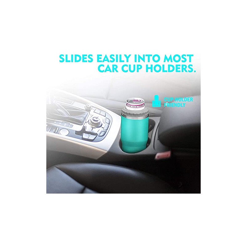 Gteller Aislador de lata/botella de acero inoxidable 4 en 1, tapas bidireccionales de 14 onzas, enfriador de latas aislado SUS, soporte para botellas de cerveza (rosa)