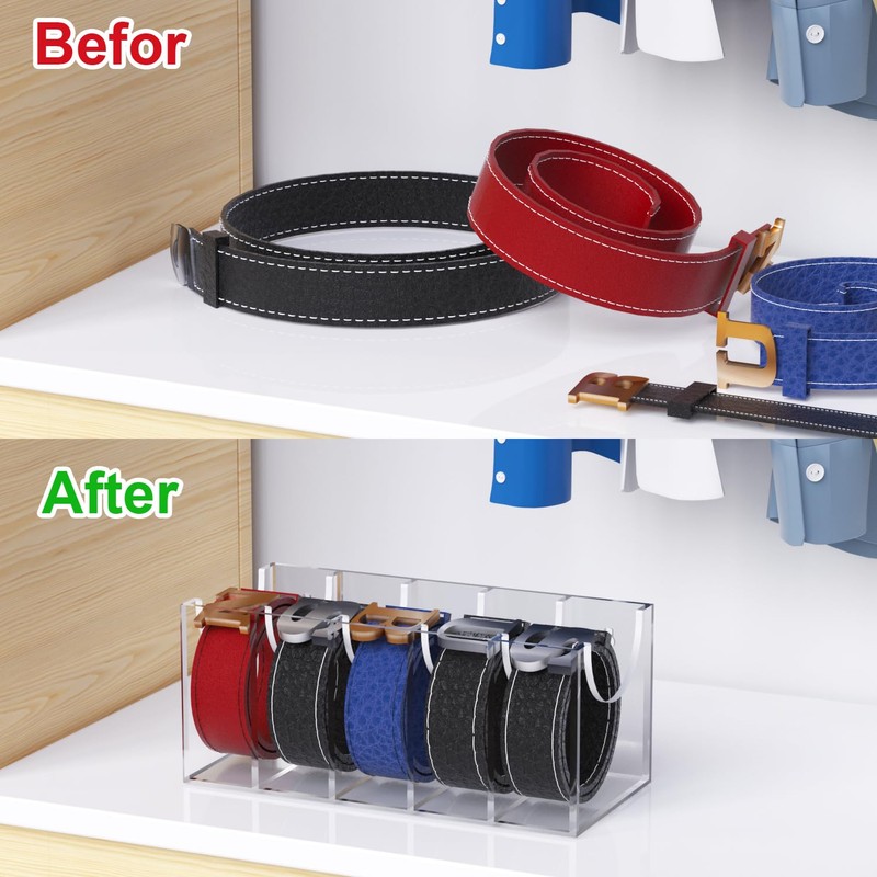 - ✈Solid & Clear: The GTI belt organizer for closet is made of acrylic material, which is strong, durable and clear waterproof. The stylish storage box ensures that your belt will not be harmed. The overall transparent design allows you to see your belt more clearly.