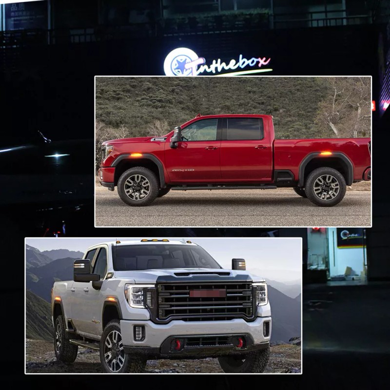 - This page features 1Pair (2 Pieces) Clear Lens Amber LED Front OR Rear Bumper Side Marker Indicator Lights For 2020-2024 GMC Sierra 2500HD & 3500HD