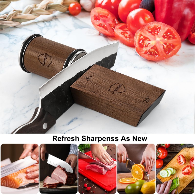 GTMANUEL Rolling Knife Sharpener Kit, Roller Knife Sharpener with Industry Diamonds and Ceramic Discs, Knife Sharpening Tool for Kitchen Knives with 15 & 20 Degrees, Full Knife Sharpener