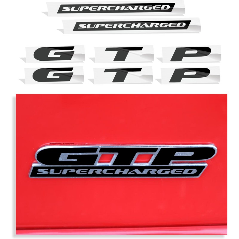 - Sold as a pair. A quantity of 1 is for 2 decals. Two GTP decals and two borders around the supercharged lettering.