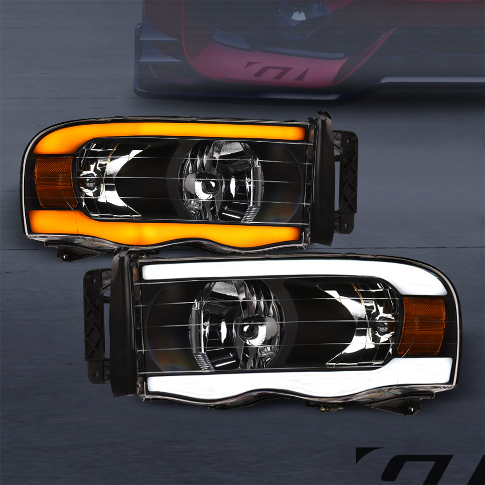 Switchback Sequential For 2002-2005 Dodge Ram Blk Headlights w/DRL LED Tube Bar