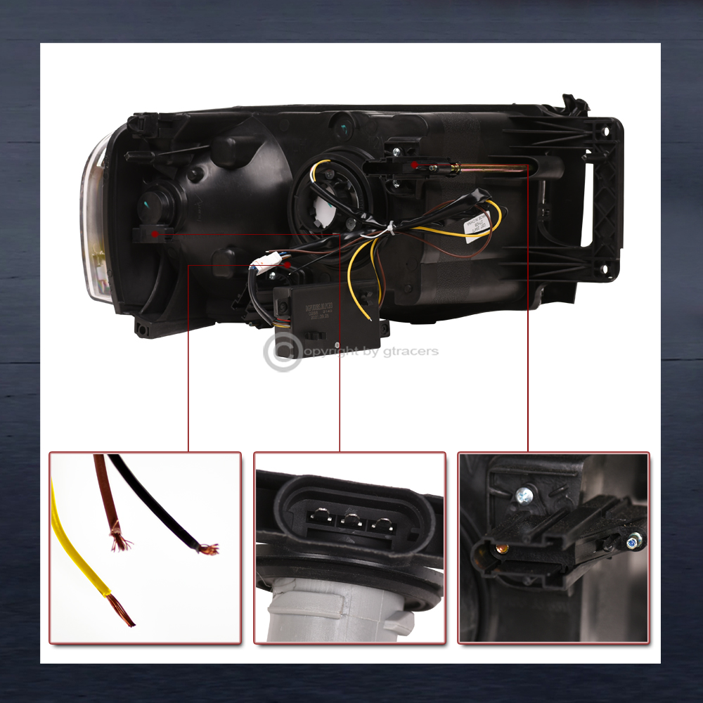 GTRacers Switchback Sequential For 2002-2005 Dodge Ram Blk Headlights w/DRL LED Tube Bar