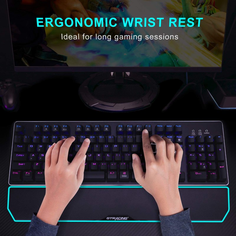 - Tactile Blue Switches: With GTRACING gaming keyboard’s mechanical blue switches, experience enhanced typing accuracy and faster response accompanied by a satisfying click sound. It offers increased comfort due to their deeper key travel and greater spacing between keys. Able to withstand millions of keystrokes they have strong reliability and are long-lasting.