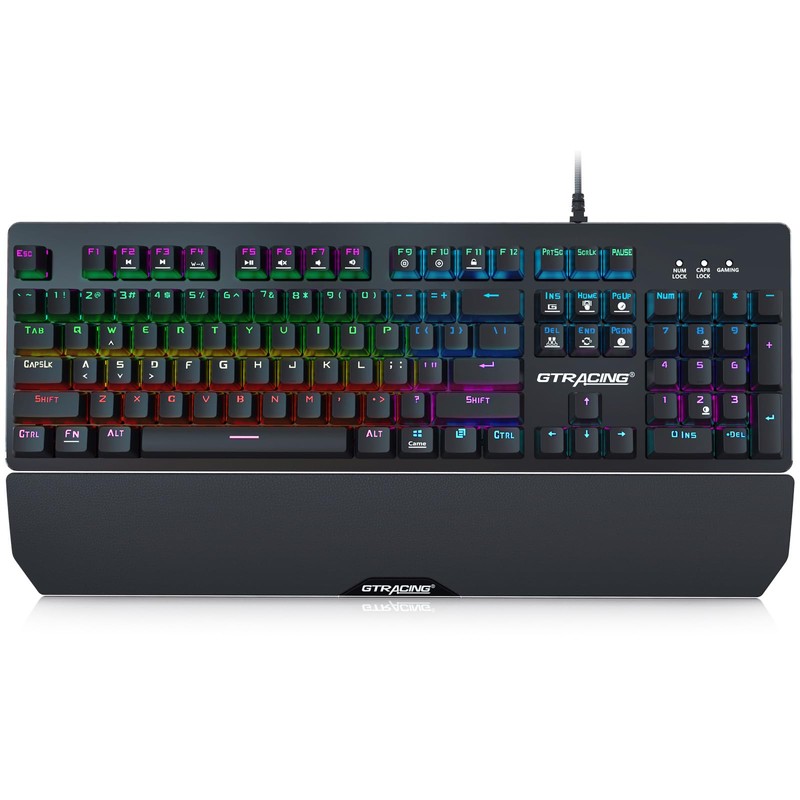 GTRACING Gaming Keyboard, Waterproof RGB Backlit Keyboard, Blue Switches, Ergonomic Wrist Rest, Programmable Macro Keys, USB Wired PC Computer Keyboard (Black)