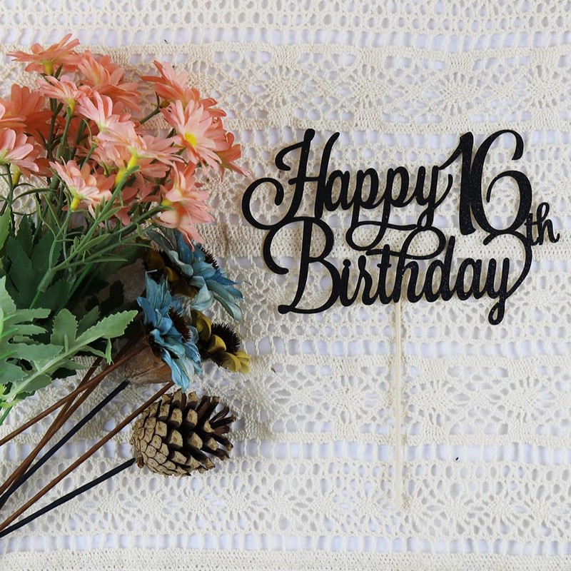 Gtseryeio - Decoración para tartas de cumpleaños 16 con purpurina negra, suministros para decoración de fiesta de cumpleaños 16 (16)