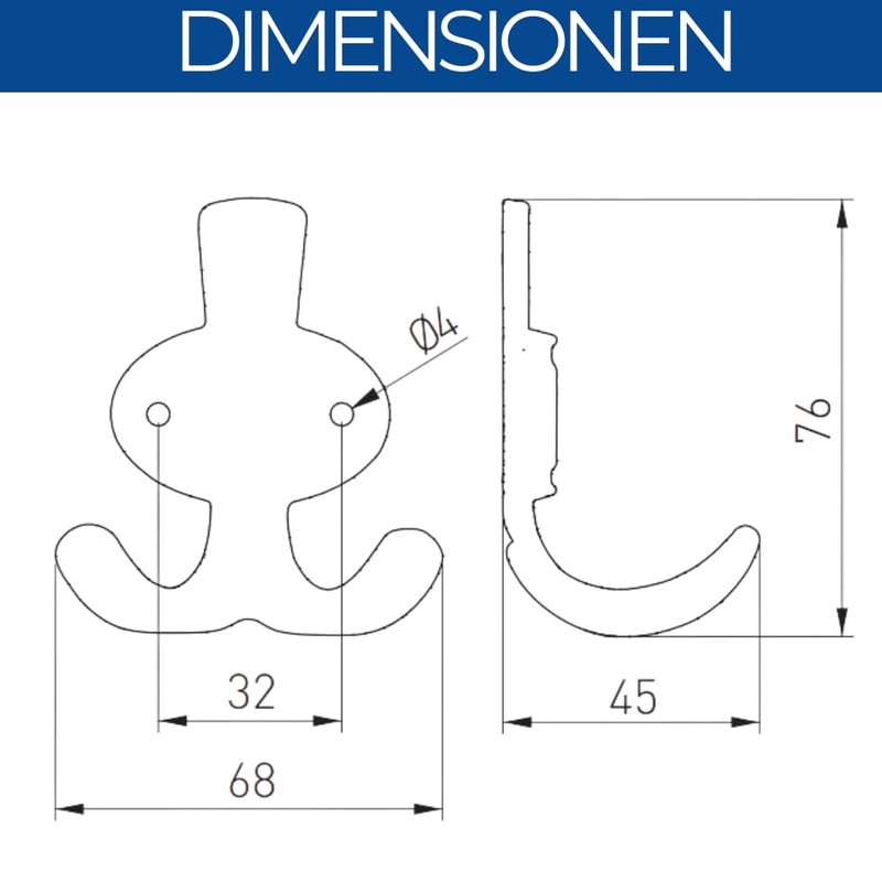 GTV - Coruna Small Coat Hook - Surface: Antique Silver - Height: 76 mm Width: 68 mm - Coat Hooks for Door, Bathroom, Kitchen, Hallway, Office, DIY Metal Hooks, Coat Hooks, Hat Hooks, Wall Hooks