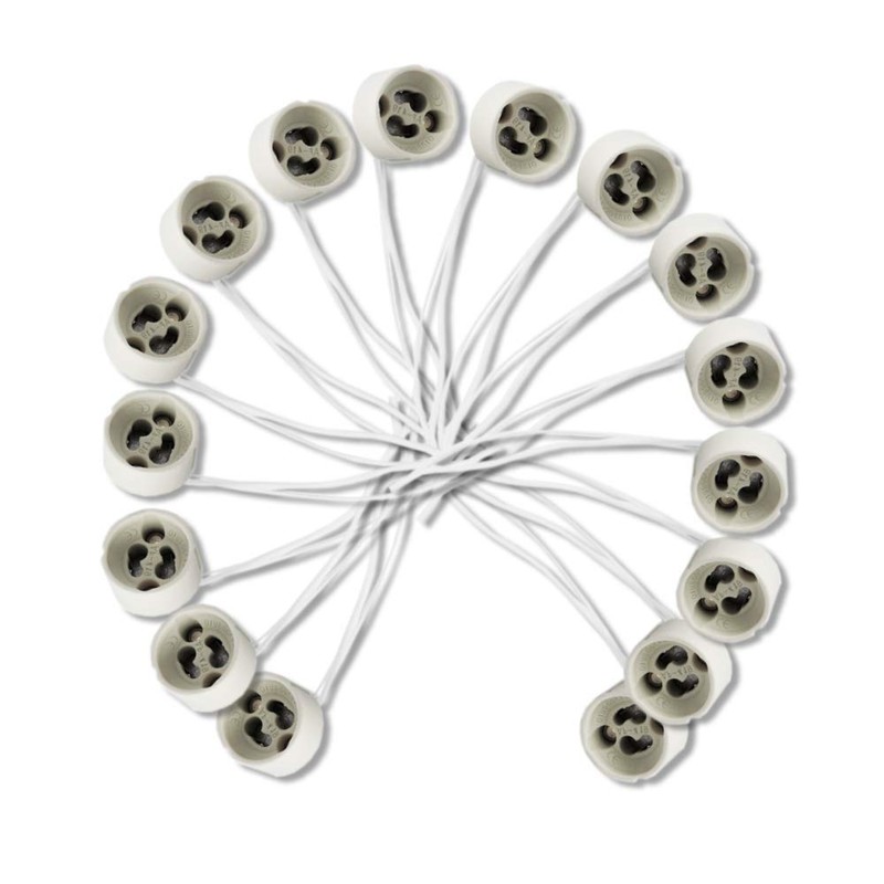 GU10 Base Socket 50 Pack Ceramic Socket Lamp Connector with Wire Length 4 inch - 10,5cm. Base Holder for Led Halogen CFL Light Dimmable