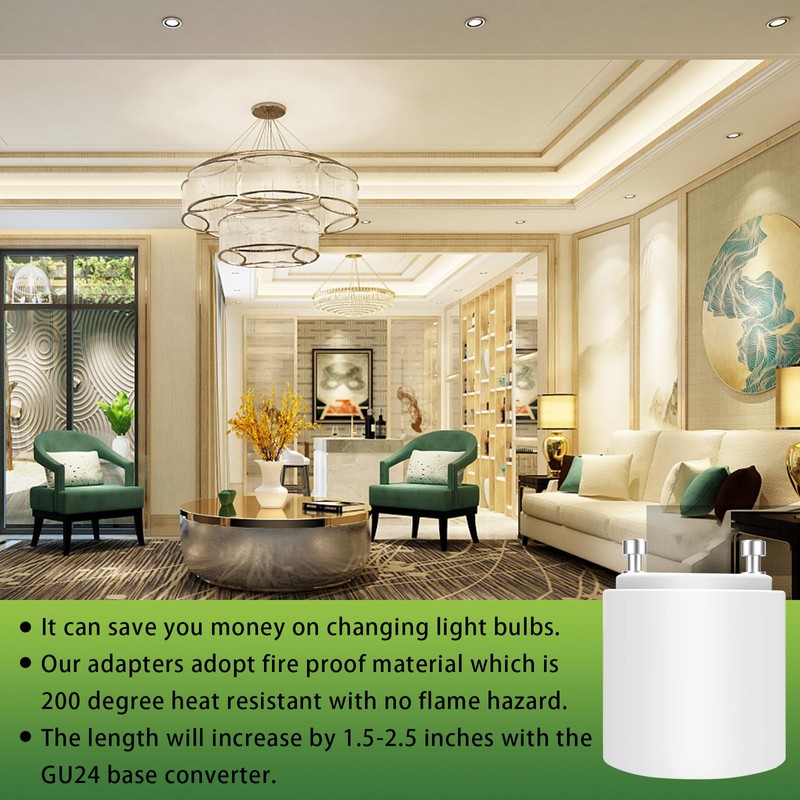 - 【Safety Light Bulb Adapter】GU24 led light adapter is made from fireproof material PBT with a fire resistance rating of UL94 V-0. Bulb adapter is 392℉/200℃ heat resistant with no flame hazard.