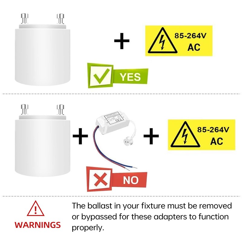 - 【GU24 to E26 Adapter】This gu24 adapter converter doesn't change any voltage or current.Rewiring removing/bypassing the ballast at the light fixture is required for these light bulb adapter to function properly,Otherwise, the light bulb socket adapter may damage your light bulb or not light up.