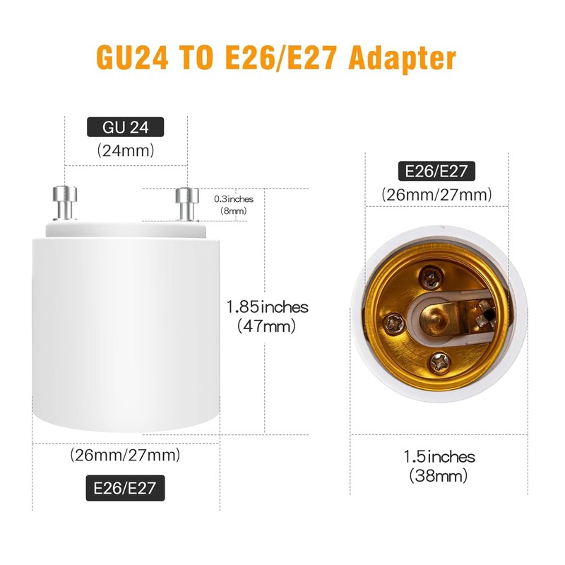 - 【GU24 Adapter to E26 Parameter】GU24 light bulb adapter can be used with the maximum wattage of 150W and the maximum voltage of 250V.Please confirm the light bulb outlet socket adapter model and size before purchasing.