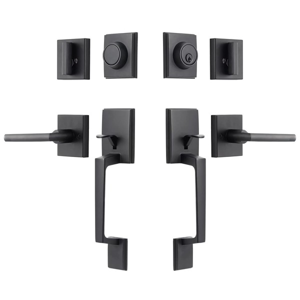 - WELL DESIGNED FRONT DOOR HANDLE: Slim square deadbolt and matching handle set with modern interior lever, this front door handlesets with deadbolt will be a classy addition to your door.