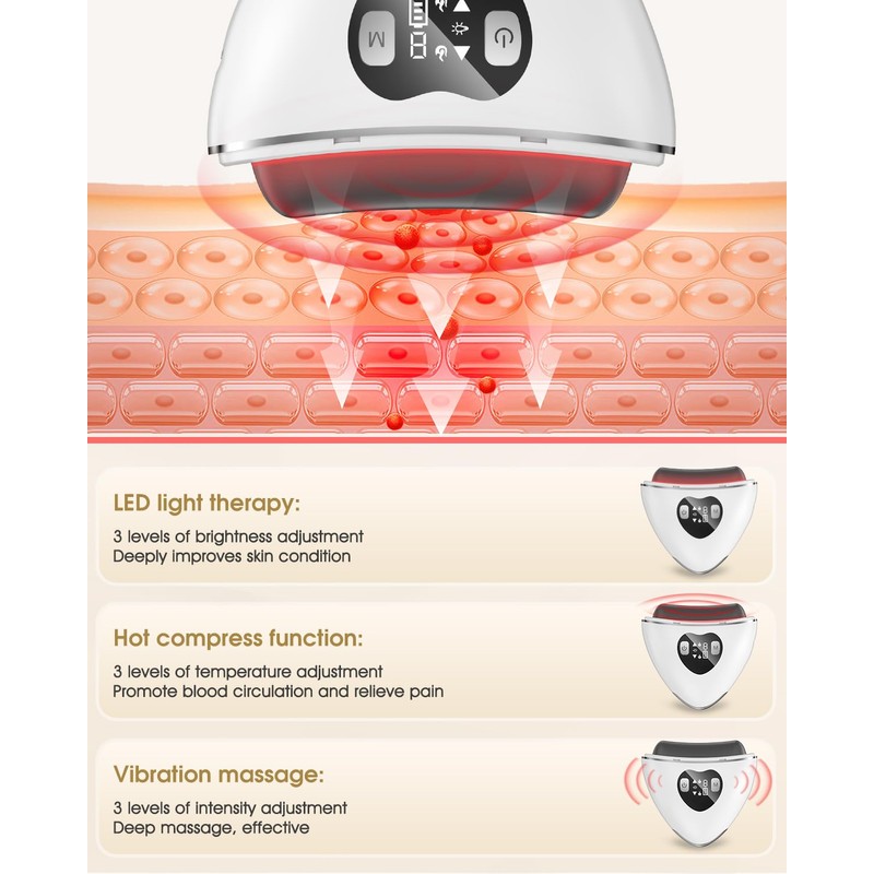 - Improved absorption of care products: EMS gua sha with the adjustable heat function (three levels) can penetrate serums and oils deeper into the skin, for maximum results in less time.