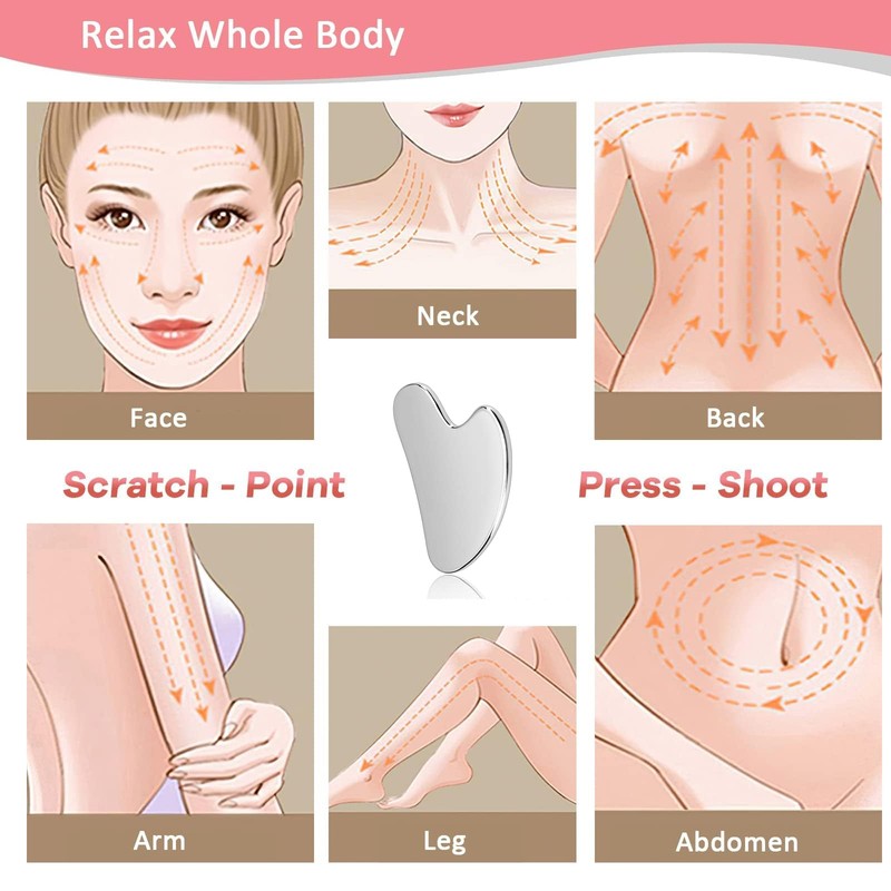 • 🌈Excellent materials: This Guasha facial tool is handmade from 100% stainless steel; The material is tougher and less brittle, making it the best choice for beginners.