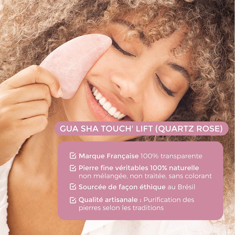 - STONES THAT MAKE BEAUTY: The Gua Sha Touch' Lift is a simple, natural, way that does not use chemical cosmetics to take care of the skin, tone and make it shine thanks to the virtues of pink quartz.
