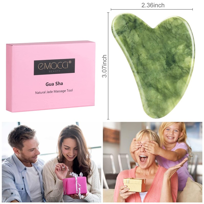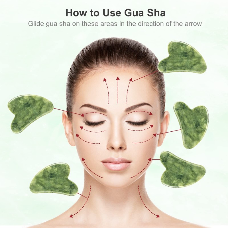Gua Sha Stone Set, Jade Guasha Massage Scraper, Face Roller for Face, Eyes Anti-Ageing Neck Massage Tool, Gift Set (Green)