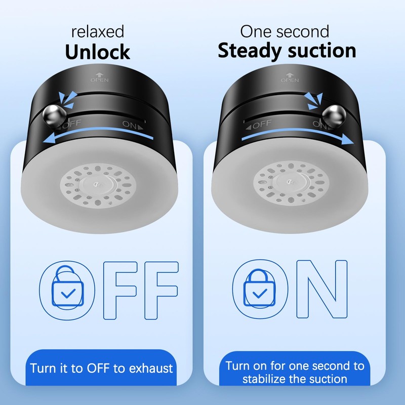 Vacuum Magnetic Phone Holder: GUAGUA 2025 upgraded vacuum magnetic phone holder, it holder can be mounted on any smooth clean surface using innovative vacuum suction technology and good adhesive rubber. Just press the button to turn it from off to on and it will hold it firmly in place, provides stable support without wobbling and not leave any marks when you remove, it is your ideal magnetic phone holder for car