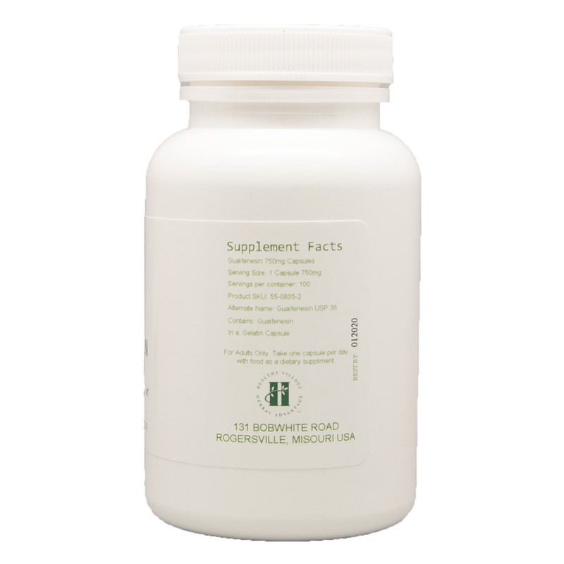 Guaifenesin Vegetable Capsules 750mg (100 Capsules) - Pure Guaifenesin No Fillers No Binders