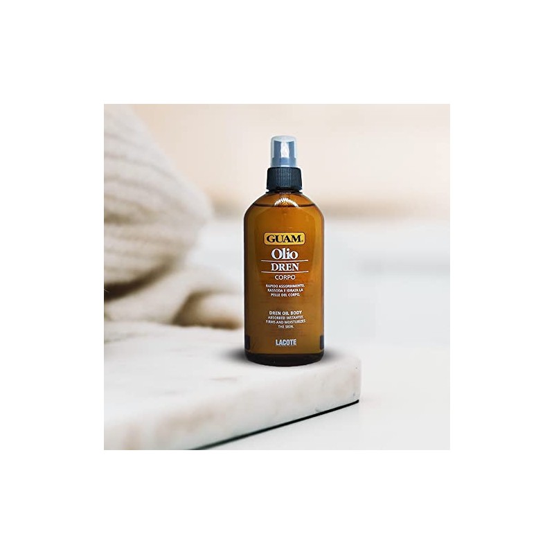 - LYMPHATIC DRAINAGE MASSAGE OIL: This anti cellulite oil has an emollient effect of these ingredients help to restore the skin’s moisture level and supports the lipid barrier to retain moisture. To to eliminating waste products, lymphatic drainage massage with Guam Dren Body Oil also boosts microcirculation and speeds up the fat breakdown, yielding a velvety soft, supple, and well-sculpted body. This light and non-greasy oil absorb instantly without leaving an oily residue on the skin or clothes.