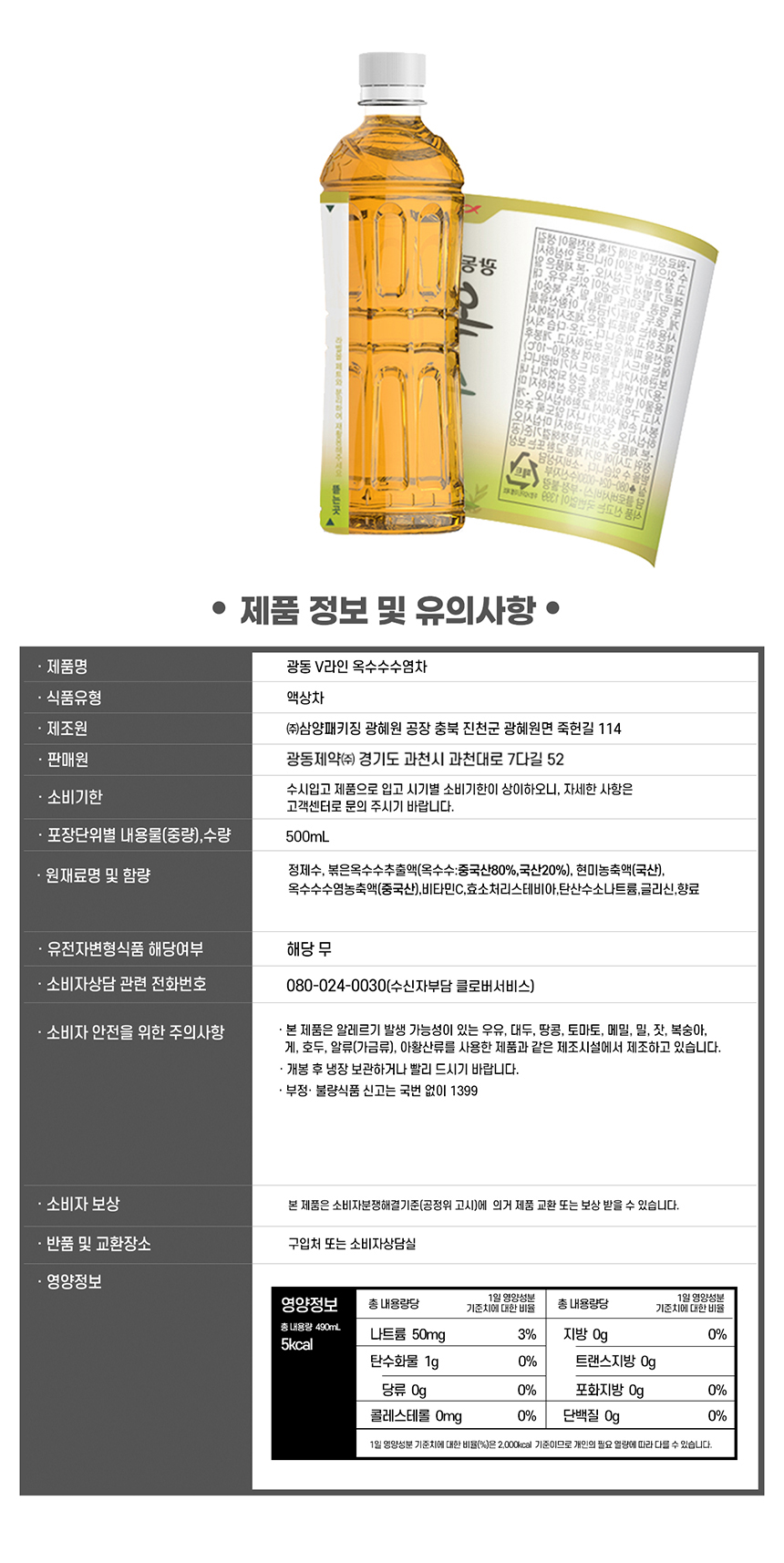 Guangdong Corn Silk Tea Label-Free 500ml / 광동 옥수수수염차 무라벨 500ml X 20병