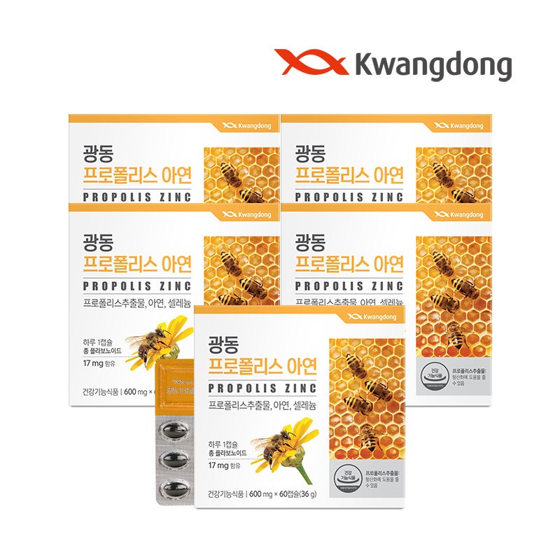Guangdong Propolis Zinc 60 capsules 5 boxes (10 months supply) / 광동 프로폴리스 아연 60캡슐 5박스(10개월분)