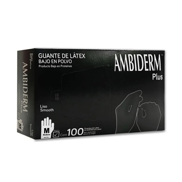 Guante de Latex Negro Ambiderm Plus Mediano Caja con 100 piezas