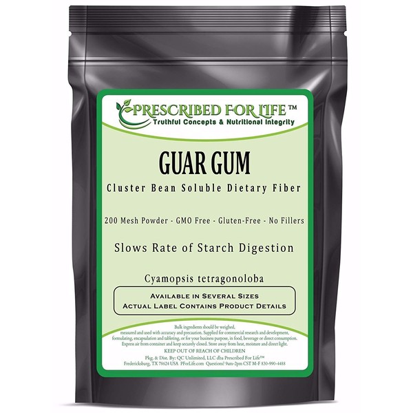 Guar gum is a fiber derived from the seed of the guar plant and may also be called guaran. It is a galactomannan and is extracted from the guar bean. The seeds are then husked and milled then dried into the final guar gum product as a natural fiber or food additive, among other uses and benefits. This ingredient may be added to foods and beverages or smoothies and green drinks. It is a white-to-light-brown powder and has no fillers or binders, additives or preservatives. Various sizes available for personal use and quantity discounts available on bulk-packed foods and food powders for commercial uses. Only the highest quality natural food and bulk ingredients are sourced through family-owned Prescribed For Life Nutrition. Thank you for shopping with us and please come again!