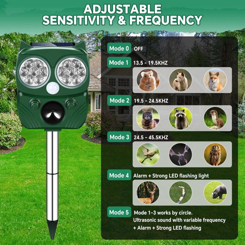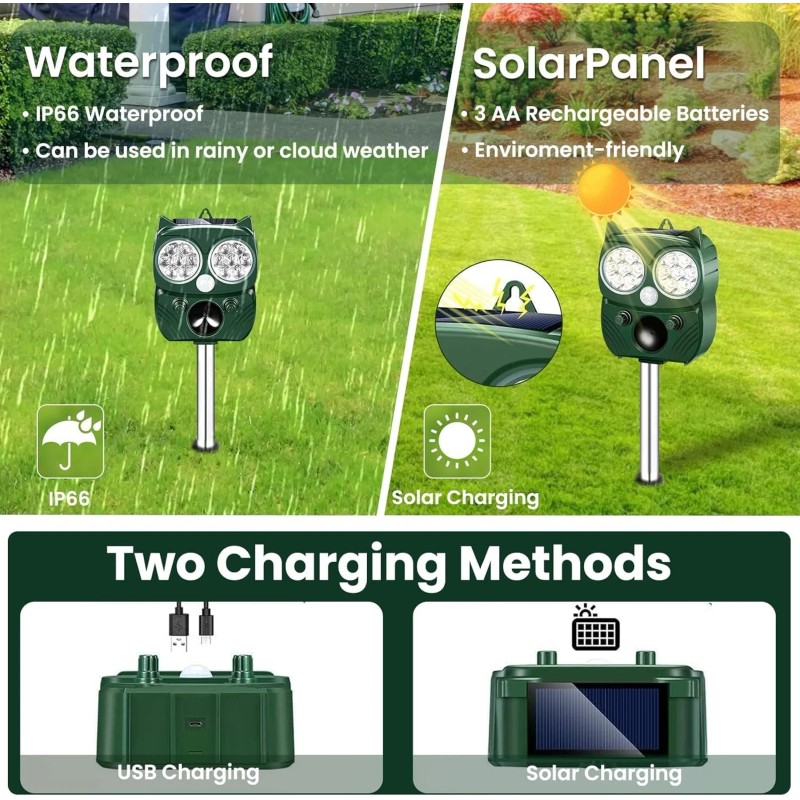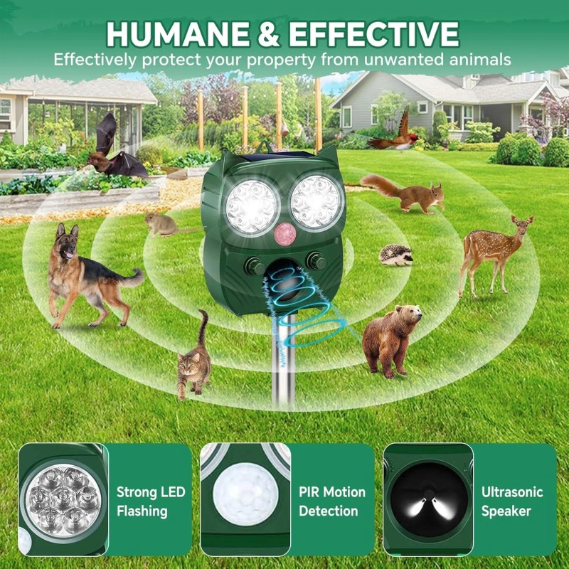 Guard Dog Security Ultrasonic Animal Repeller Solar Power Bird Dog Cat Skunk Deer Raccoon Repellent
