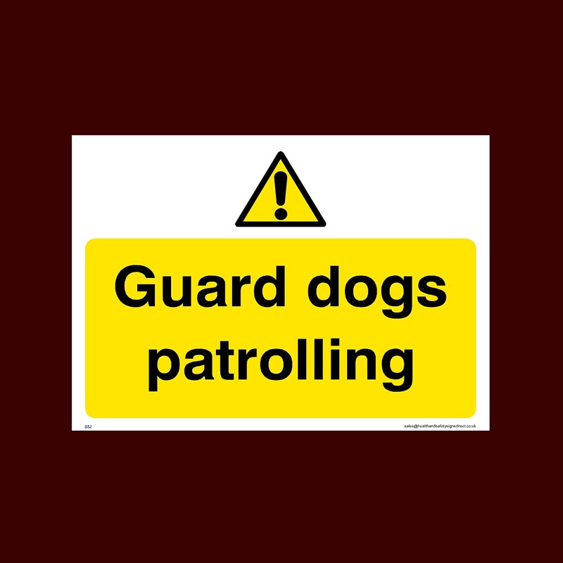 Guard dogs patrolling Plastic Sign (S52) - CCTV, Security, Warning, Alarmed, Surveillance, Camera, Dogs, Premises