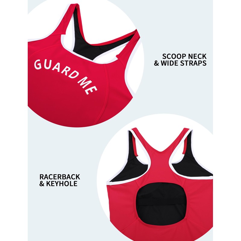 GUARD ME Women Swimming Guard Boyleg One Piece Swimsuit Competitive Pro Bathing Suit Red