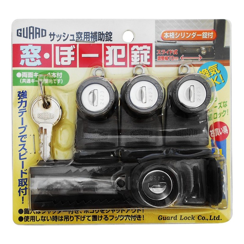 GUARD No.540-4B Sash Window Auxiliary Lock, Window and Burr Crime Lock, Bronze, Set of 4