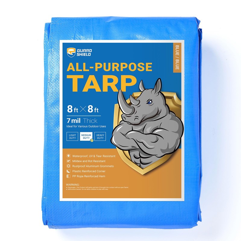 GUARD SHIELD Blue Tarp Waterproof 8x8 Feet Medium Duty All Purpose Poly Tarps Cover 7mil