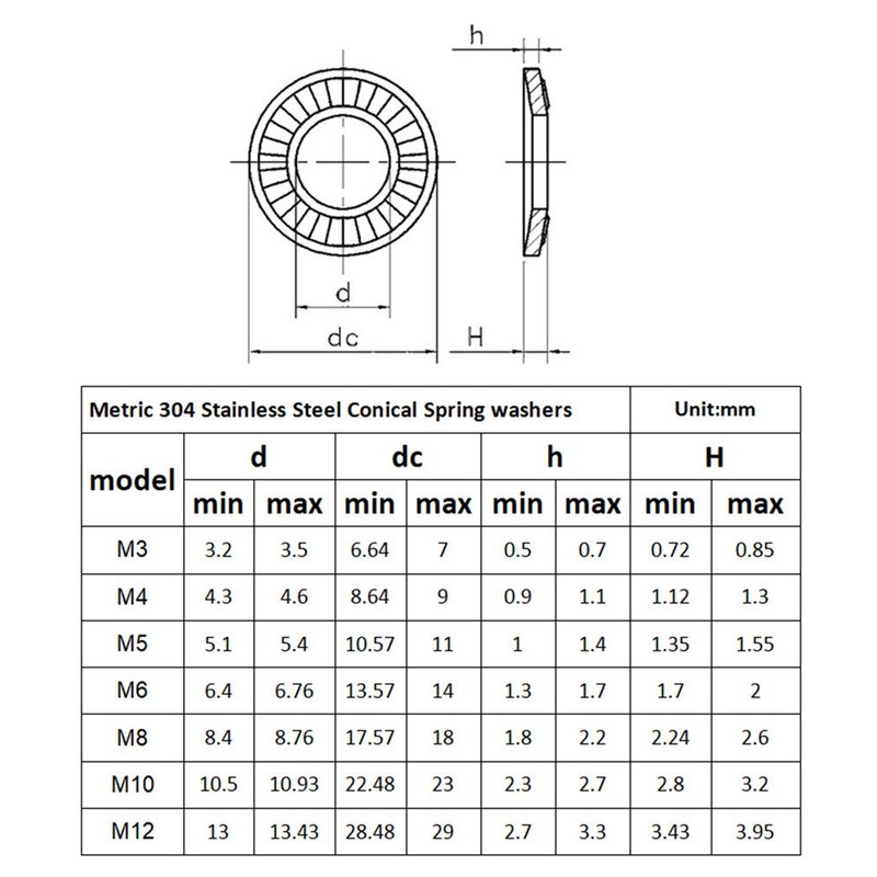 - High Quality Stainless Steel Heavy Duty Belleville Spring Washers kit,Meets DIN 6796 specifications.