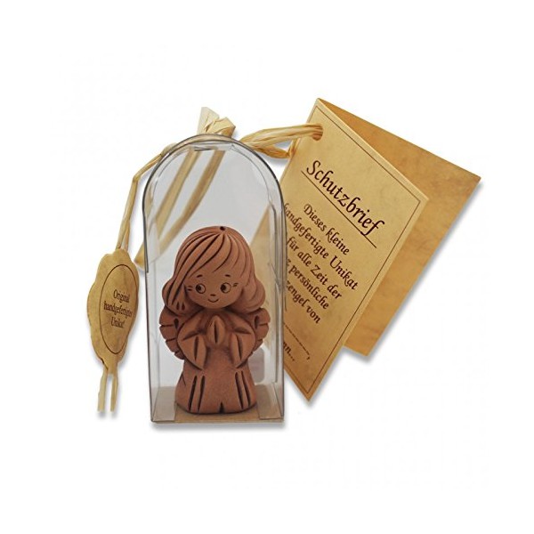 Guardian Angel Kneeling with Protective Letter Made of Clay Handmade Unique Height Approx. 4 cm