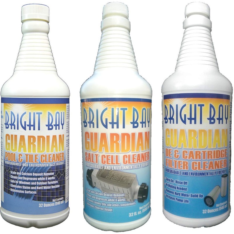 Guardian Pool Care Pack-Tile Cleaner (32 oz), Filter Cleaner (32 oz), Salt Cell Cleaner (32 oz) - Grout/Glaze Safe