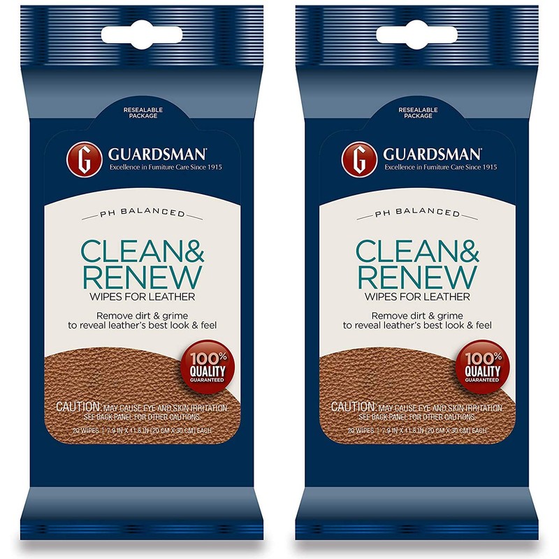 Guardsman Clean & Renew Leather Wipes - 20 Count - Removes Dirt & Grime, Great For Leather Furniture & Car Interiors - 2 Pack