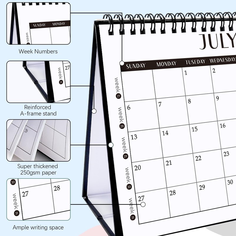 - Durable & Functional Build: Built with sturdy metal twin-wire binding and a reliable A-frame stand, this aesthetic desktop monthly calendar planner is designed to last. Use it flat on your desk, countertop,table or in a standing position—its easy page-turning design makes planning a breeze