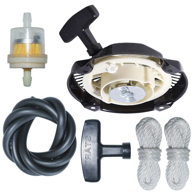- What you get: 1 x recoil starter, 1 x handle, 2 x rope, 1 x fuel filter, 1 x fuel line