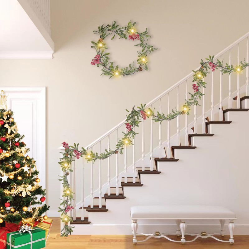 - Garland with Lights Battery: This natural touch garland needs 3AA batteries to operate (not included in the package), and it is not affected by wires. During the New Year holidays, you can decorate anywhere you want, such as window staircase birthday farmhouse