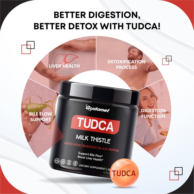 GUDOMET Premium TUDCA with Milk Thistle, Artichoke, Burdock & Black Pepper – Supports Bile Flow & Liver Health -150 Capsules- Made in The USA