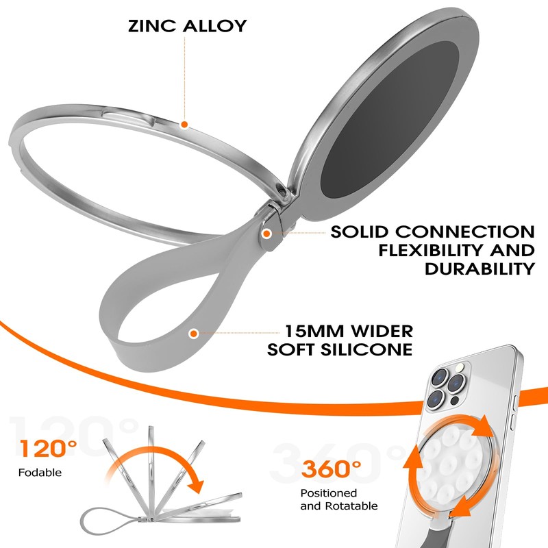 GUDOU Magnetic Suction Cup Phone Mount, Magnetic Phone Grip Holder Kickstand, Adjustable Removable Stand, Magnetic Grip with Silicone Loop Strap, Magnetic Grip Holder for All Phones (White)